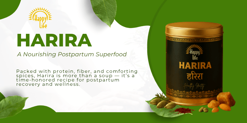 Discover the healing power of Indian postpartum foods with Happy Life Harira.Perfect for new mothers seeking natural postpartum recovery.